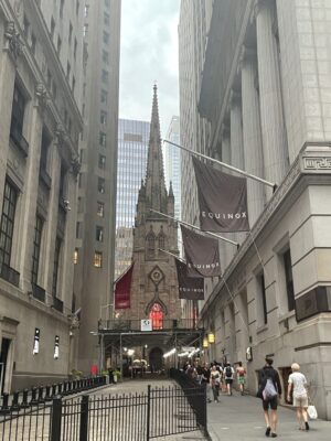 教会の横には広場があり、そこにはニューヨーク・エピスコパル教区200周年を記念して1985年に製作されたPeace Fountain(ピース・ファウンテン)があります。聖ミカエルがサタンを倒していて、悪に対する善の勝利を表しているそうです。